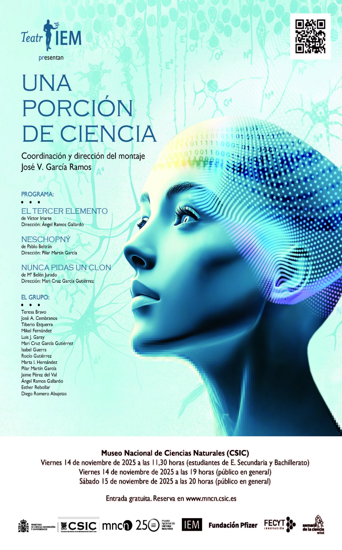 Como sabéis, TeatrIEM es un grupo que nació en el seno del CSIC, en el Instituto de Estructura de la Materia, en febrero de 2013. Está formado casi en su totalidad por investigadores de distintas especialidades y categorías científicas, que sacrifican parte de su tiempo y de su ocio para montar espectáculos teatrales. Hasta ahora, todos nuestros espectáculos, estrenados siempre en el Museo Nacional de Ciencias Naturales, se han caracterizado por estar compuestos por una serie de escenas cortas que giran alrededor de la Ciencia, de su grandeza y también, a veces, de sus miserias.
